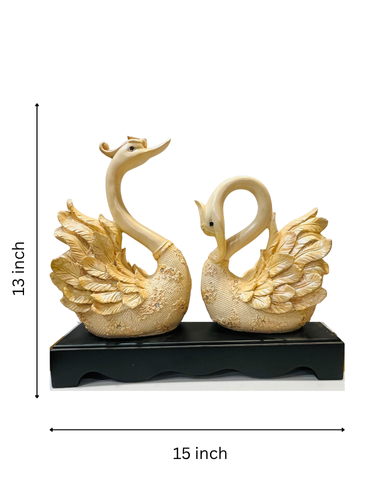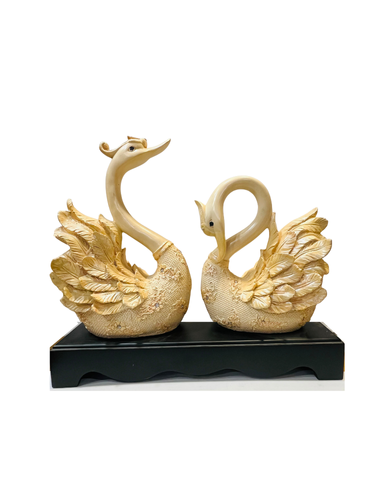 Elevate your home aesthetics with this stunning Golden Swan Couple Showpiece, a symbol of everlasting love and elegance. Crafted with intricate feather detailing and a smooth finish, the swans are posed gracefully to enhance the ambiance of any room.