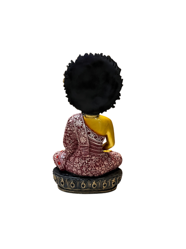 • Design: Meditating Buddha in antique gold with intricate maroon robe detailing